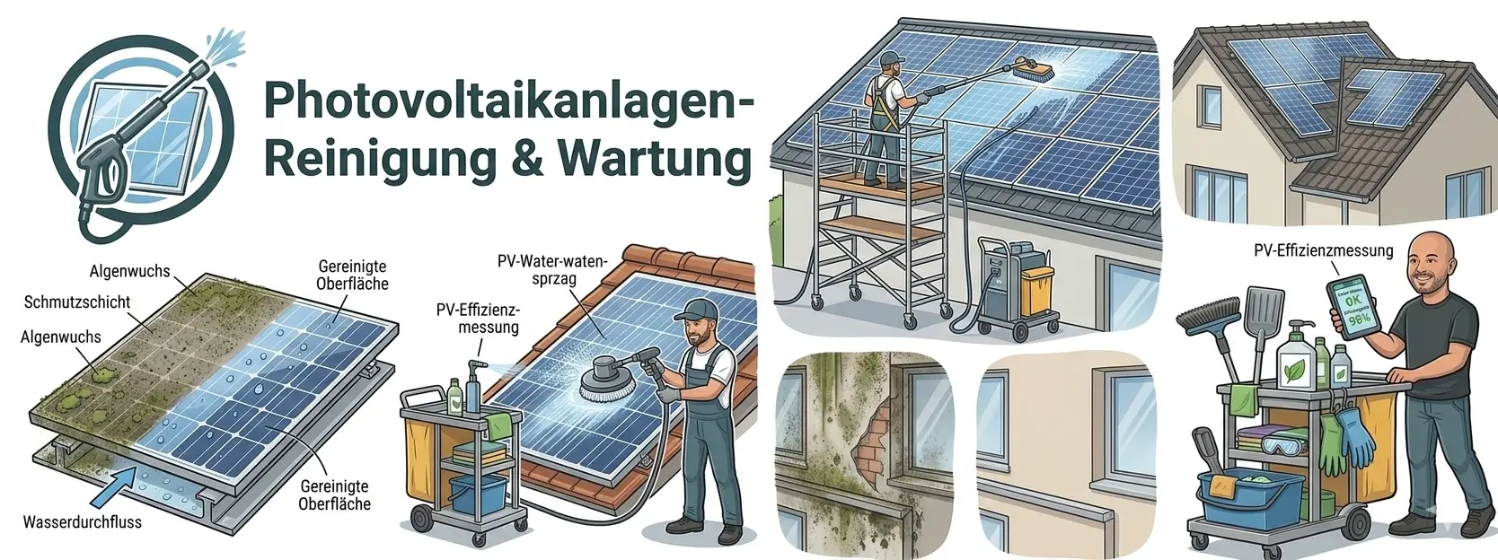 Verschmutzungen durch Staub, Pollen oder Vogelkot können den Wirkungsgrad Ihrer Photovoltaikanlage deutlich reduzieren. Unsere spezialisierte Reinigung entfernt leistungsminderde Beläge schonend und rückstandsfrei. So sichern wir die maximale Energieausbeute und Langlebigkeit Ihrer Investition.